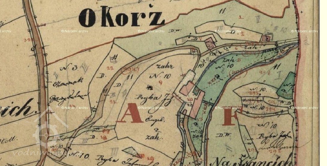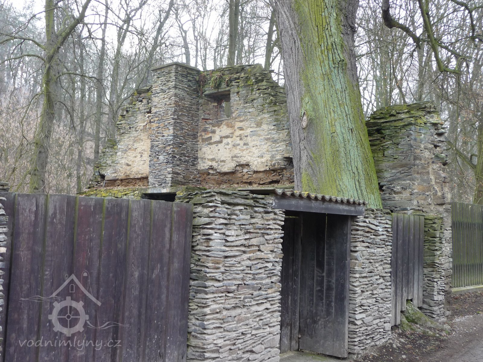 mlýn zcela zpustlý, střechy spadány, kola zasypána