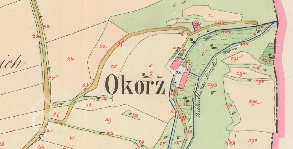 Zbytky zdí mlýna uváděného na historické mapě stojí v zahradě v zatáčce u turistické cesty z Okoře do Kovár. Mlýn byl ve zříceninách již v roce 1905. V okolí je chatová osada Colorado.