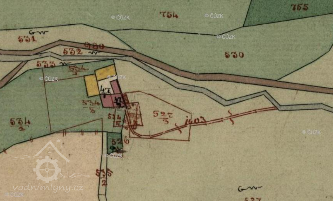 Popis1930: 1 kolo na svrchní vodu, hltnost 0,05 m3/s, spád 7,5 m, výkon 3 HP