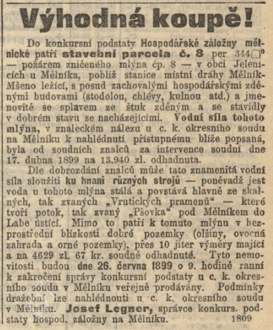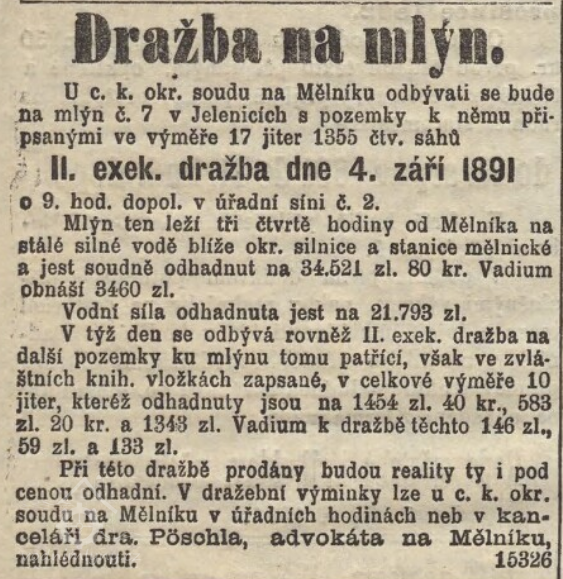 Dražba mlýna 4. září 1891. (RR)