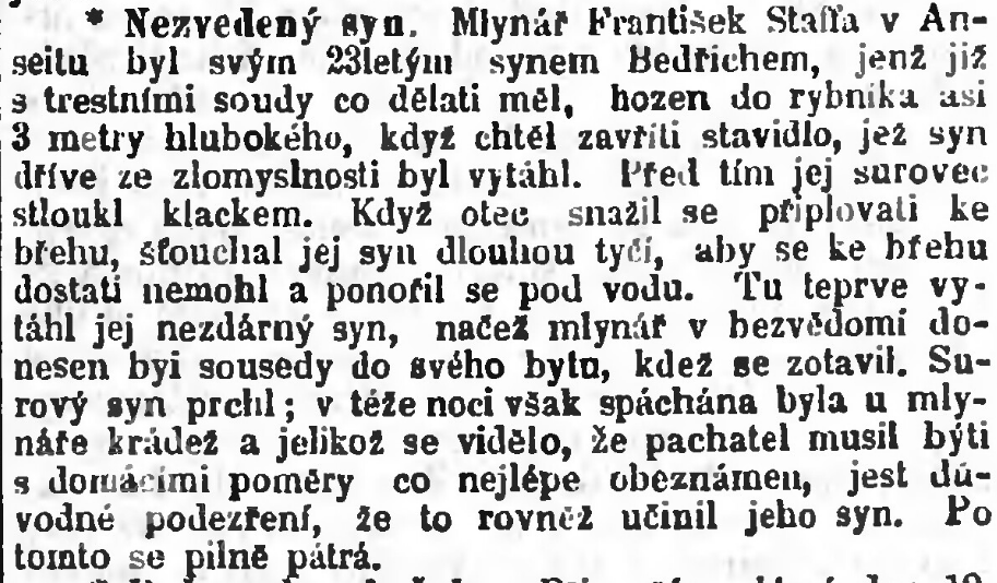 Ve Vodní knize je zapsán ve starém zápisu z r. 1876 majitel mlýna Franz Staffa. Vlastnil mlýn v letech 1861 - 1890.