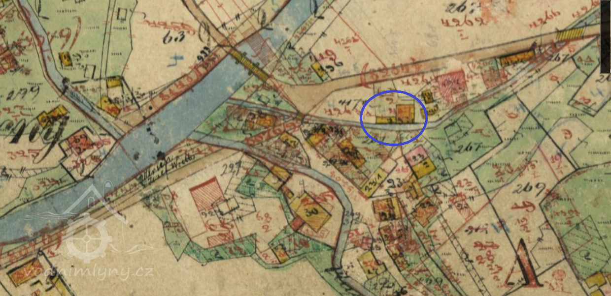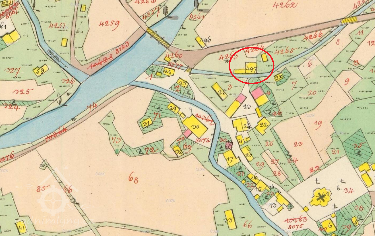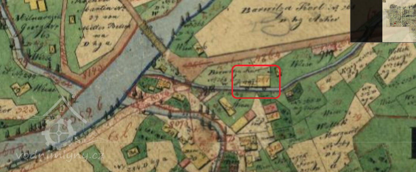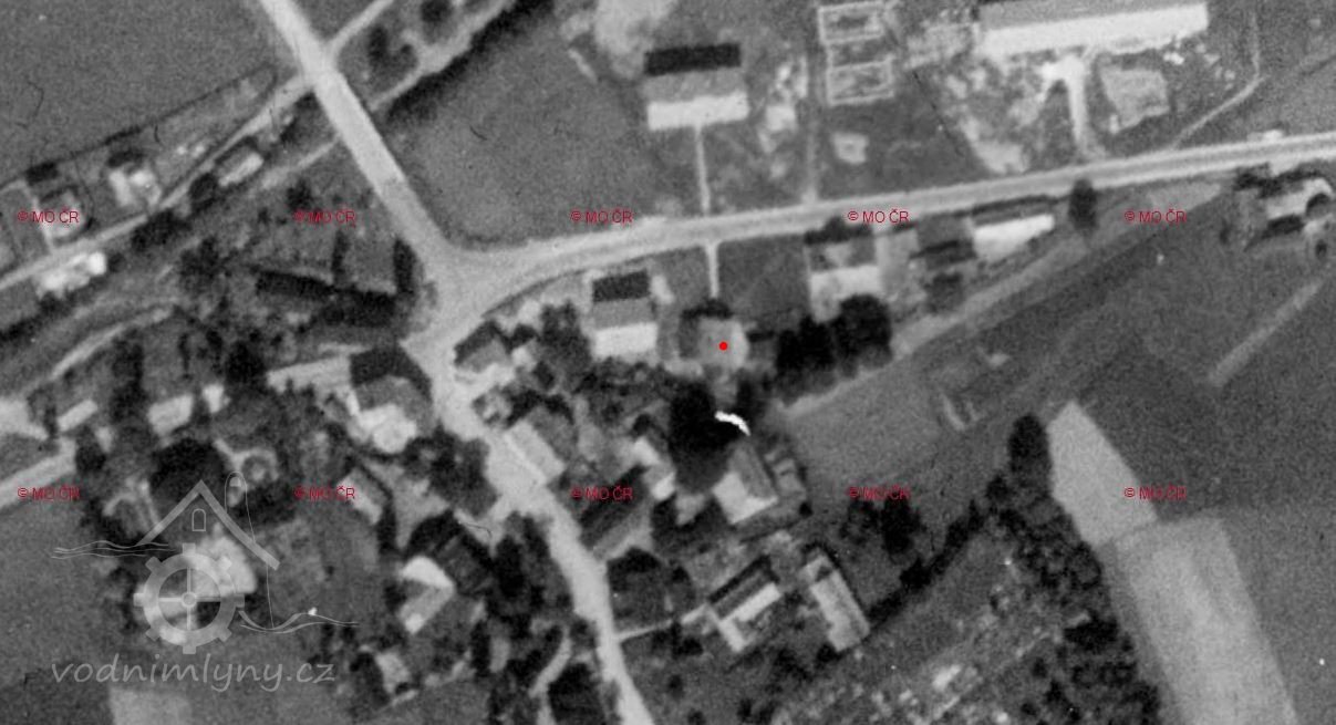 Na snímcích z roku 1961 je vidět ještě průběh náhonu, v roce 1990 již není náhon patrný.
