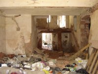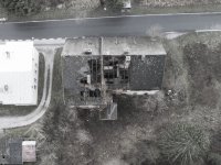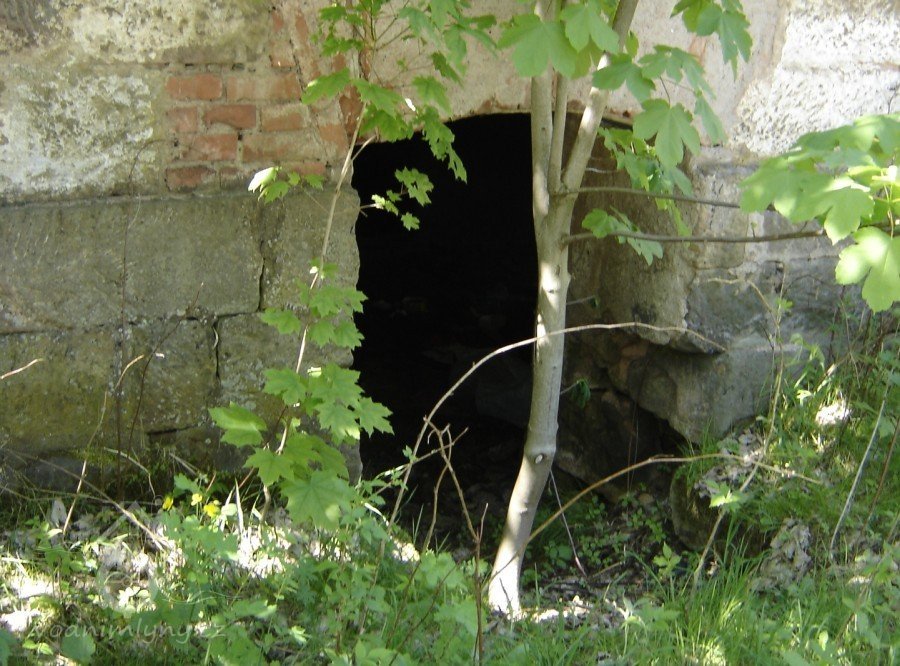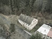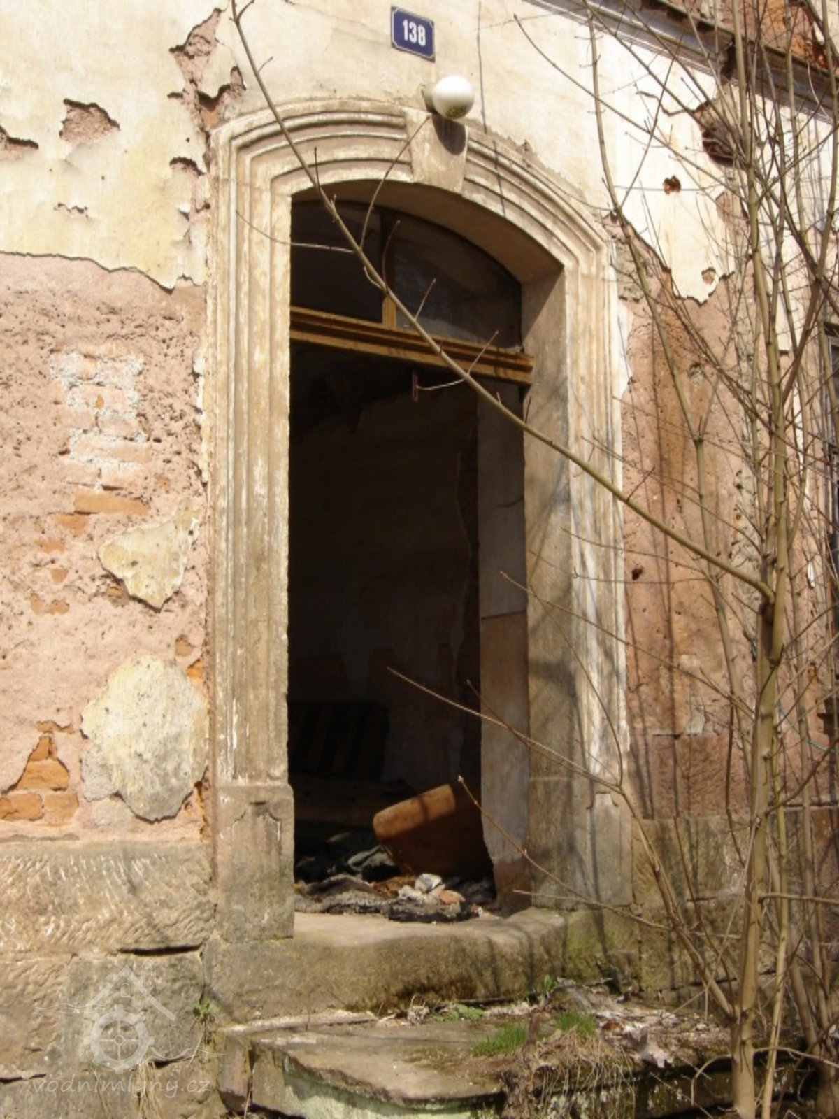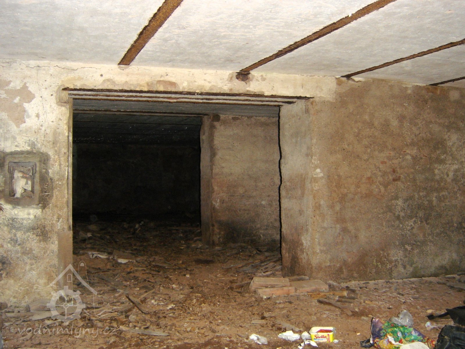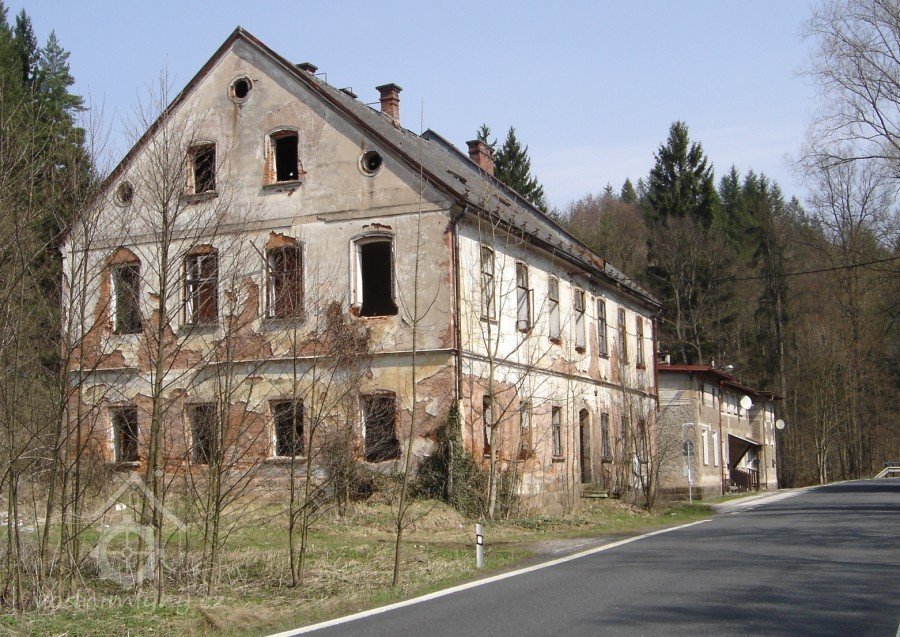 Chátrající budova mlýna stojí při silnici z Debrného do Nových Zámků.