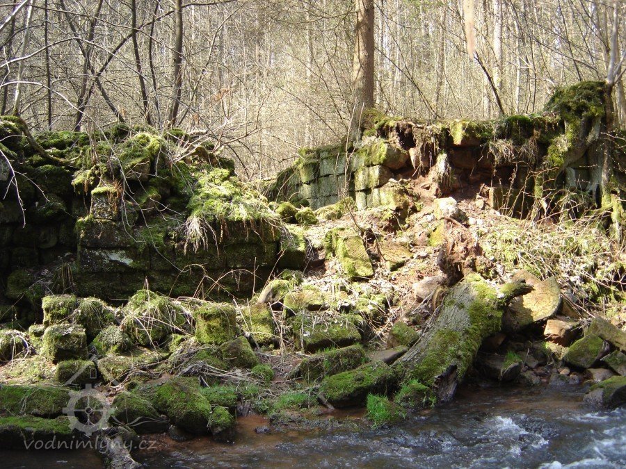 Mlýn byl napájen náhonem, který vedl od ohybu Kalenského potoka. Zde podle zbytků zdiva na obou březích bylo i přehrazení k nadržení vody.