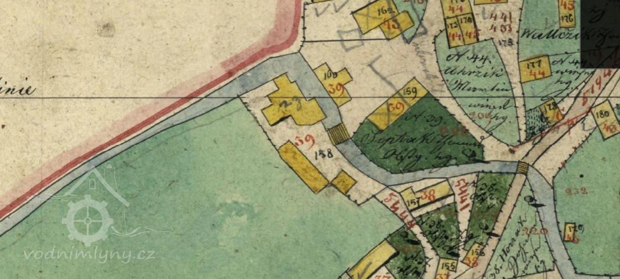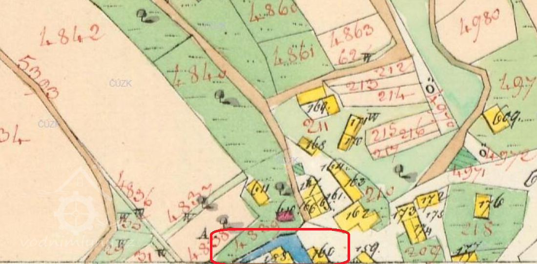 Popis1930: 1 kolo na svrchní vodu, hltnost 0,174 m3/s, spád 4,3 m, výkon 5,9 HP