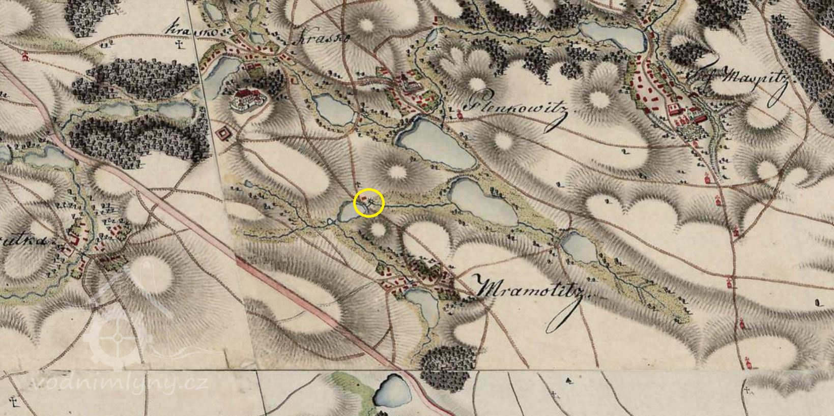 Pilský rybník a mlýn,na severním okraji mramotického katastru, při cestě na Kravsko, je velmi starého data. Již roku 1487 se dozvídáme, že loucký opat přikoupil část luku rybníka kvůli stavbě nové hráze a mostku.Neboť v okolí patřily pozemky také znojemskému měšťanskému špitáluna Horním předměstí, musel se opat zavázat, že bude špitálu posílat dvě kopy kaprů ročně. Rybníku se původně říkalo Mostecký (Brückl-Teich). Mlýn loucký opat pronajímal různým mlynářům. Roku 1786 byl odkoupen mlynářem Karlem Šťastným.