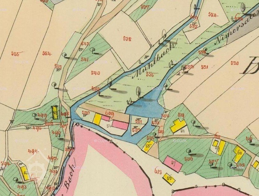 Ve Vodní knize je zapsán majitel mlýna Rudisch.