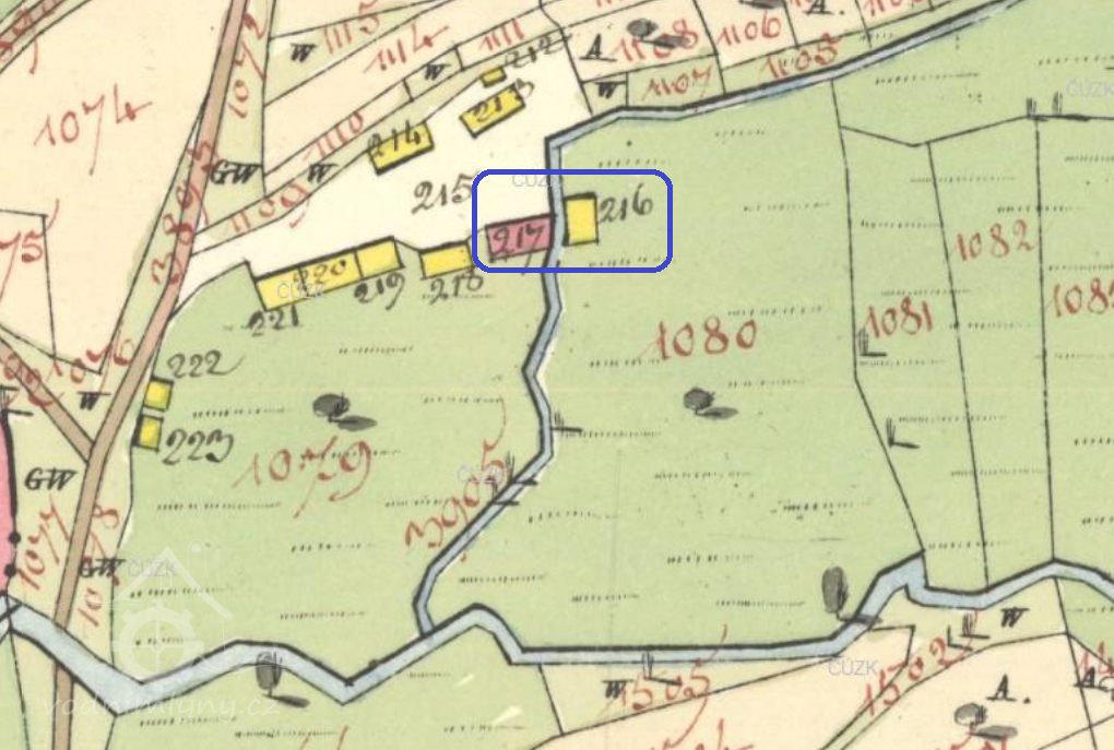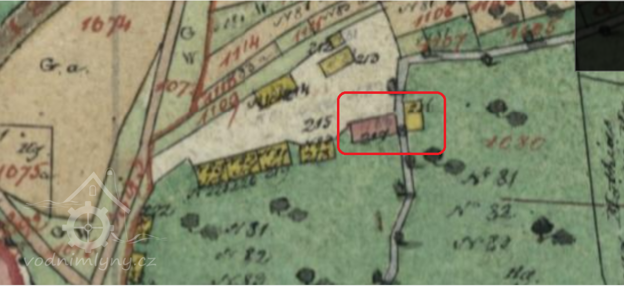 Popis1930: 1 kolo na svrchní vodu,hltnost 0,123 m3,/s, spád 4,5 m, výkon 5 HP