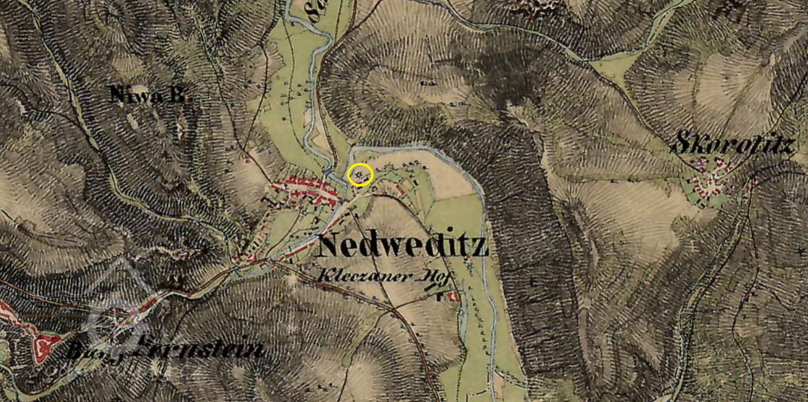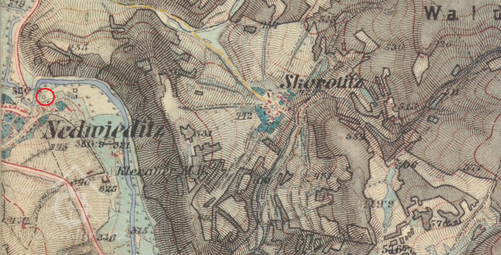 350 m východně od kostela sv. Kunhuty v Nedvědicích
