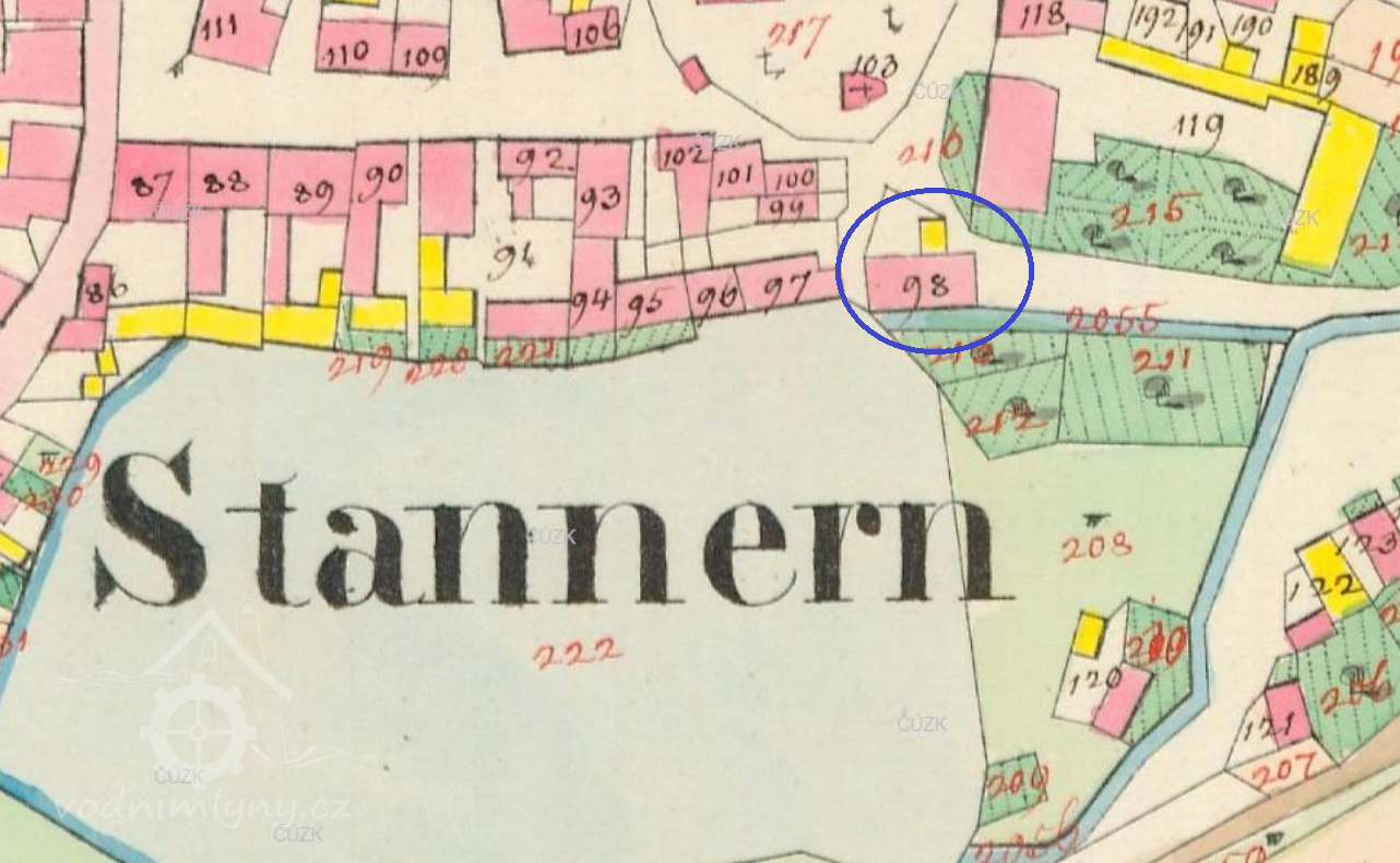 Popis1930: 1 kolo na svrchní vodu, hltnost 0,188 m3/s, spád 3,6 m, výkon 4,56 HP