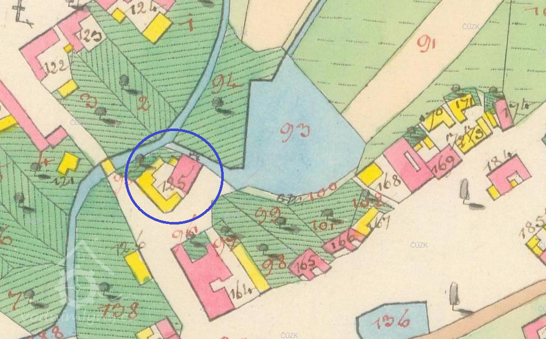 Popis1930: 1 kolo na svrchní vodu, hltnost 0,11 m3/s, spád 3,1 m, výkon 3 HP