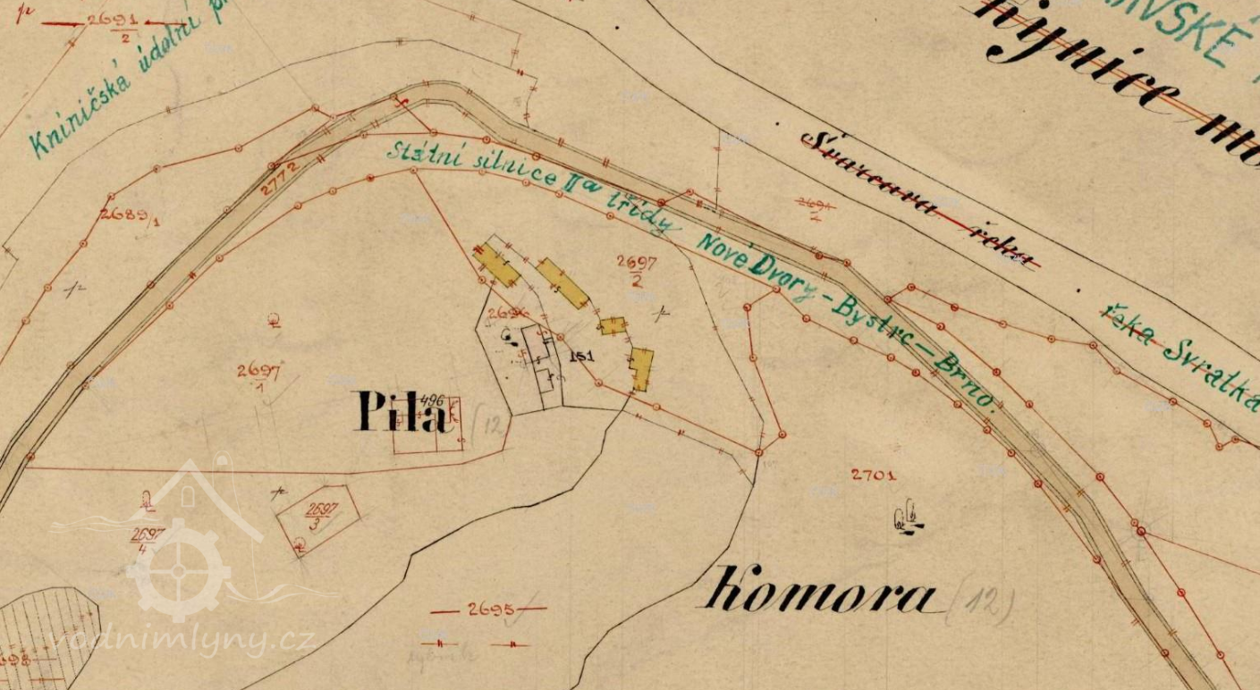 Mlýn stával nedaleko hradu Veveří, mezi Malým hradním a Velkým hradním rybníkem. V pol. 19. stol. přestavěn na pilu.