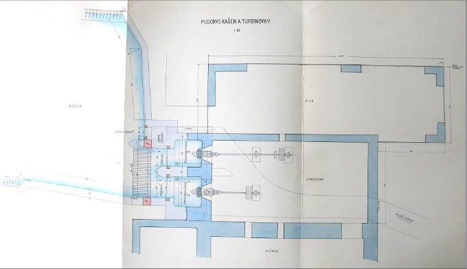 1930: 2 turbíny Francis, hltnost 0,16 a 0,12 m3/s, spád obou 5,5 m, celk. výkon 15,6 HP