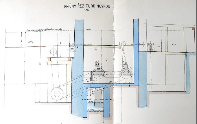 PopisPo špatný technický stav všechna vodní kola nahradily v roce 1920 dvě horizontální Francisovy turbíny o výkonu 15 a 7,5 HP