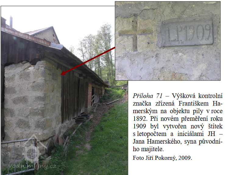 Požadavek zastavit vodu se samozřejmě nemohl líbit mlynáři z č.p. 24, který by kvůli tomu musel zastavit svoji živnost. Celou věc tak řešilo okresní hejtmanství, které v srpnu 1892 provedlo zahamování výšky této sporné výpusti a výškově ji určilo na nově zbudovaný kontrolní bod vytesaný v podobě křížících se rýh na pilíři přístřešku pily.