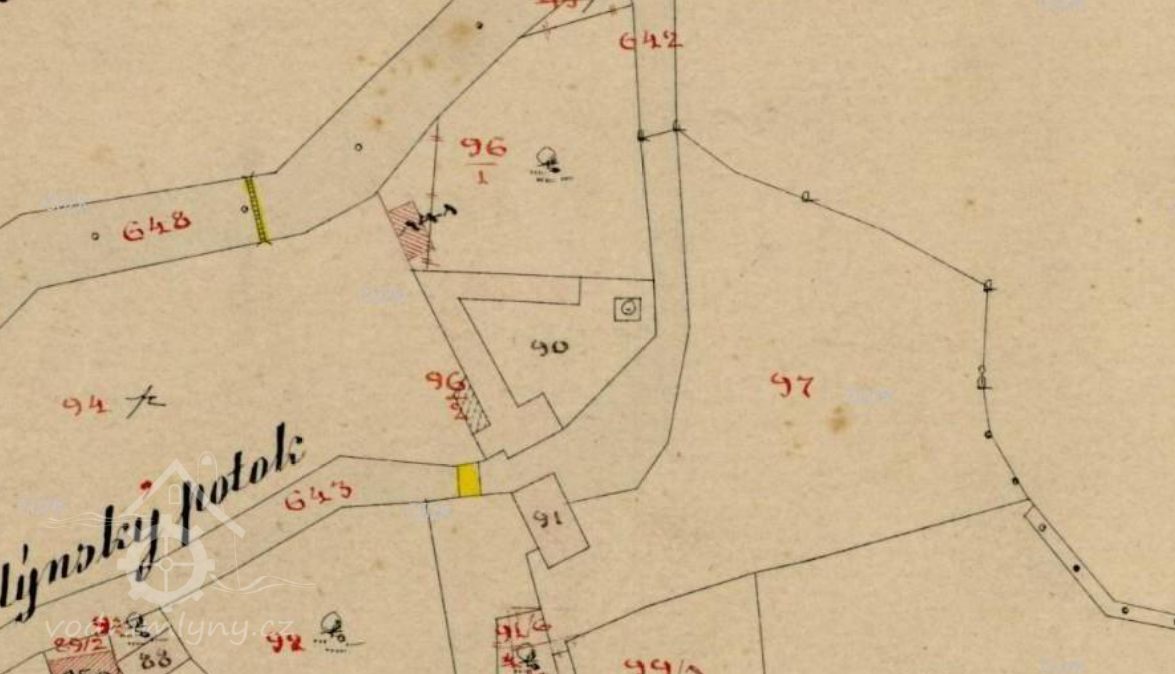 Původně mlýn poháněla dvě vodní kola na spodní vodu o průměru 6 m, zvaná Amerikány, později menší o průměru 2,5 m na horní náhon. V roce 1905 došlo ke stavbě první a roku 1907 druhé turbíny. Druhá turbína umožnila osvětlit mlýn vlastní elektřinou. Každá turbína měla výkon 18 HP. Mlynář Adámek podporoval Sokol a tak v roce 1923 dynamo z mlýna umožnilo osvětlení i pro divadelní hru Lucerna, hranou Sokolem v místním hostinci u Vetešníků.