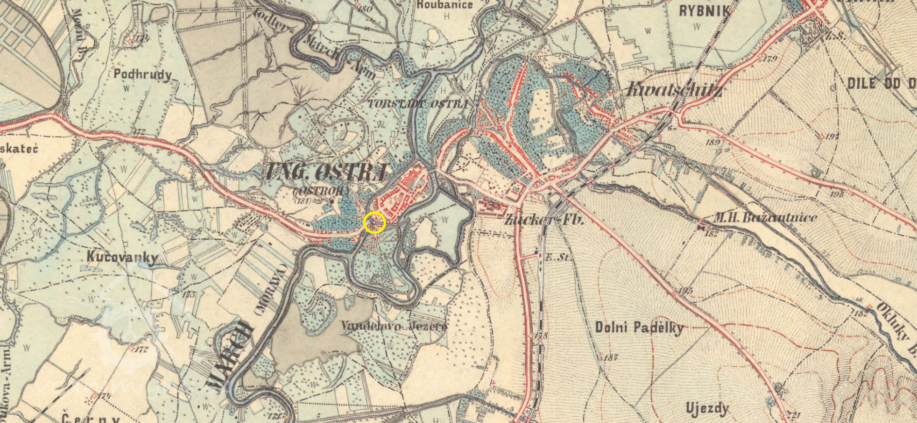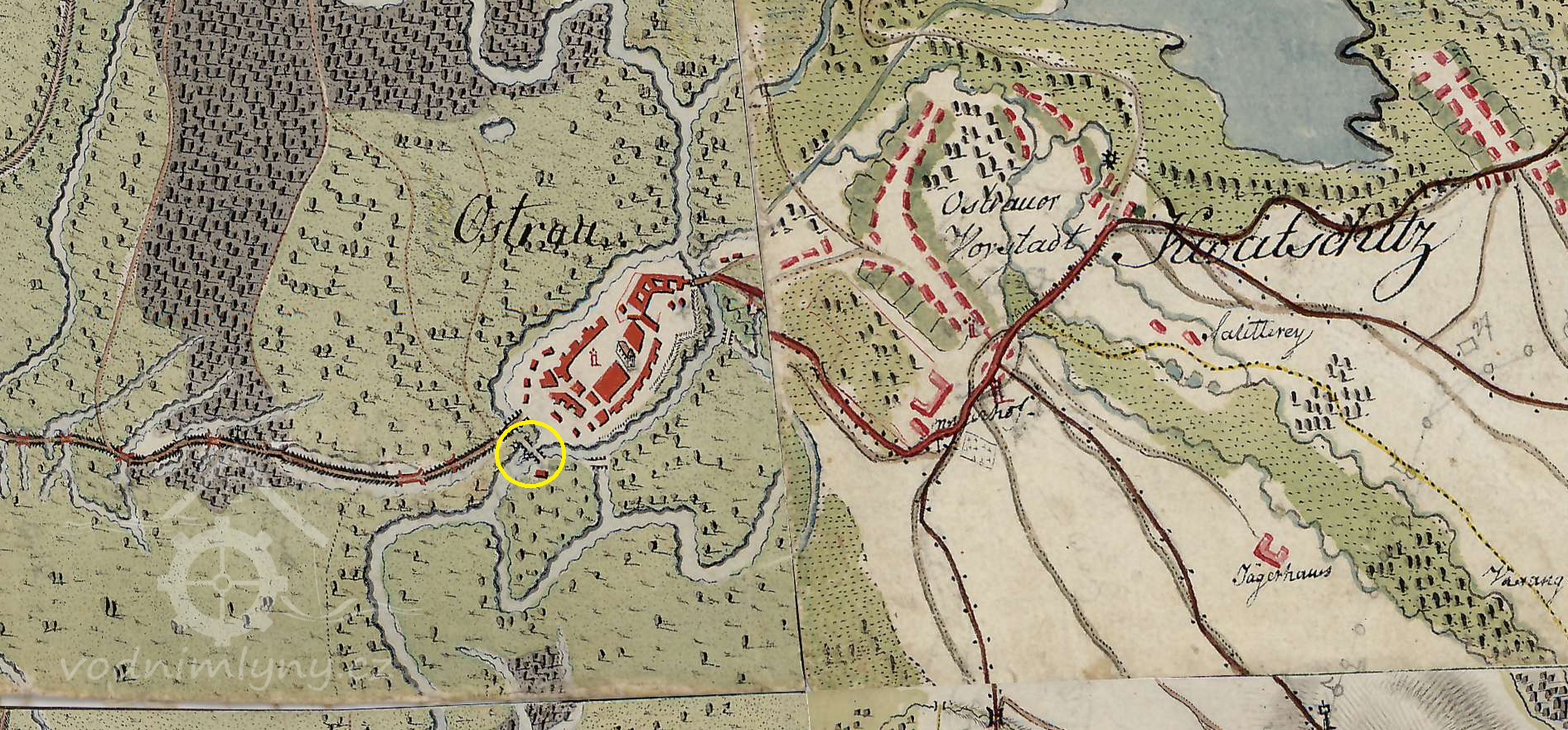 Starý vrchnostenský mlýn v Uherském Ostrohu patřil k největším vodním zařízením na řece Moravě. Mlýn roku 1890 vyhořel, v roce 1893 jej od Lichtenštejnů koupili vlastníci cukrovaru, bratři Mayové. Noví majitelé nechali vyhořelý mlýn přestavět na moderní válcový, vedle něho zbudovali pilu. Mayové uvedli do provozu turbínu na výrobu stejnosměrného elektrického proudu, sloužící nejprve k osvětlení mlýna, posléze i k osvětlení dalších objektů a veřejného prostranství. V roce 1937 se stal mlýn stejně jako cukrovar součástí břeclavských Rolnických cukrovarských podniků. Ve zrekonstruovaném mlýně dnes sídlí firma zabývající se distribucí potravin.