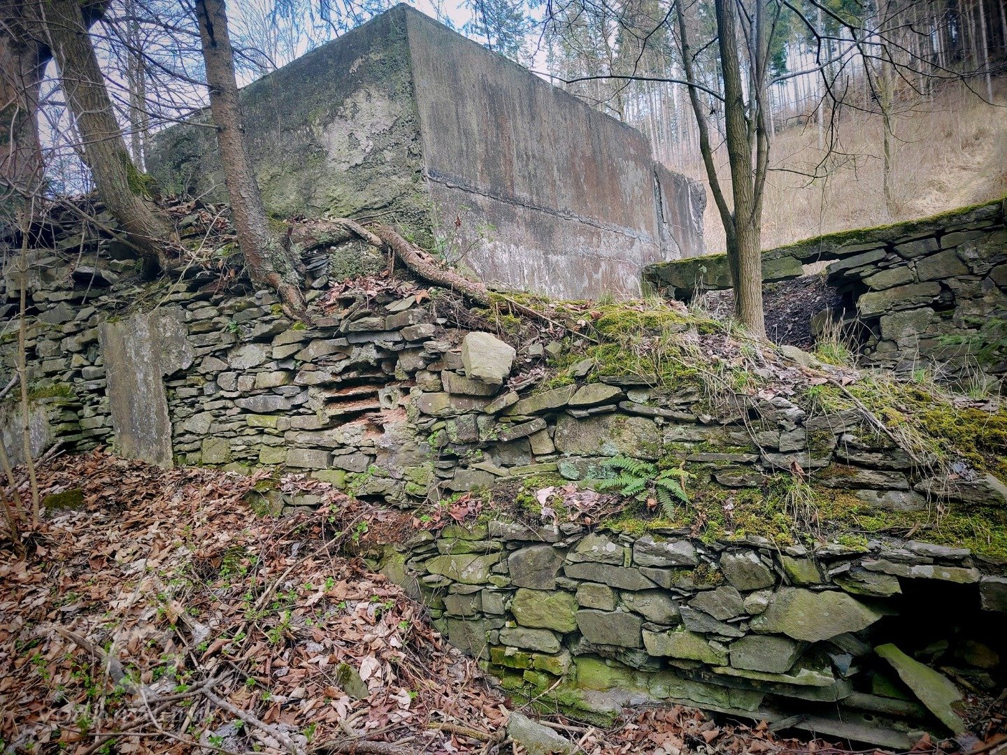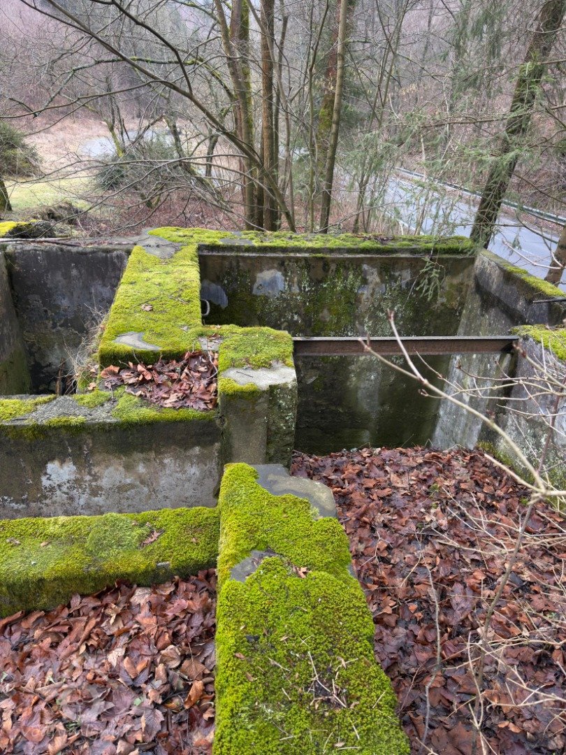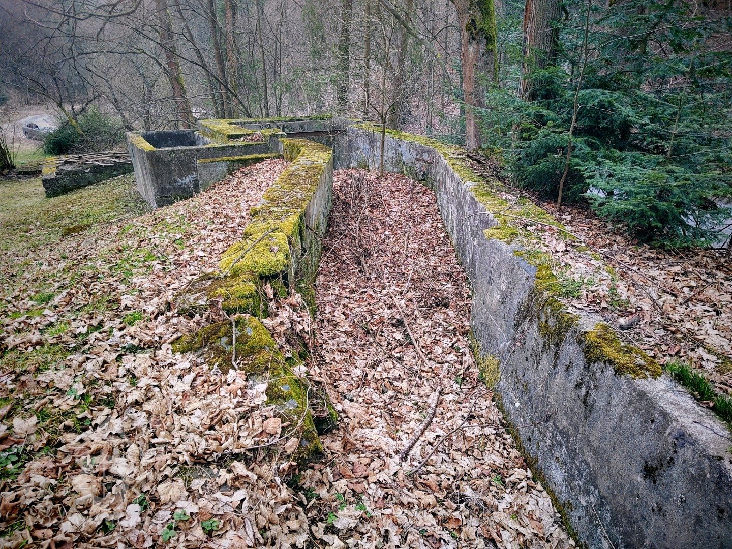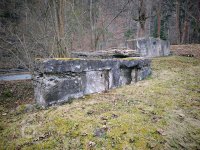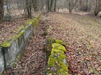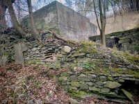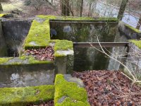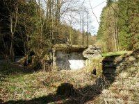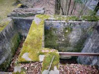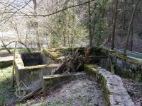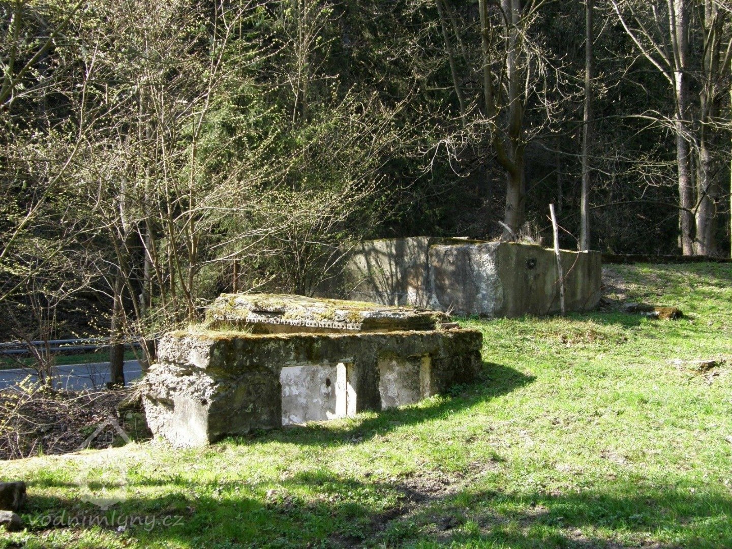 Zachovány betonové vantroky a turbínová kašna, větší část odbourána při stavbě silnice.