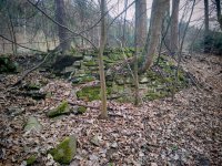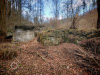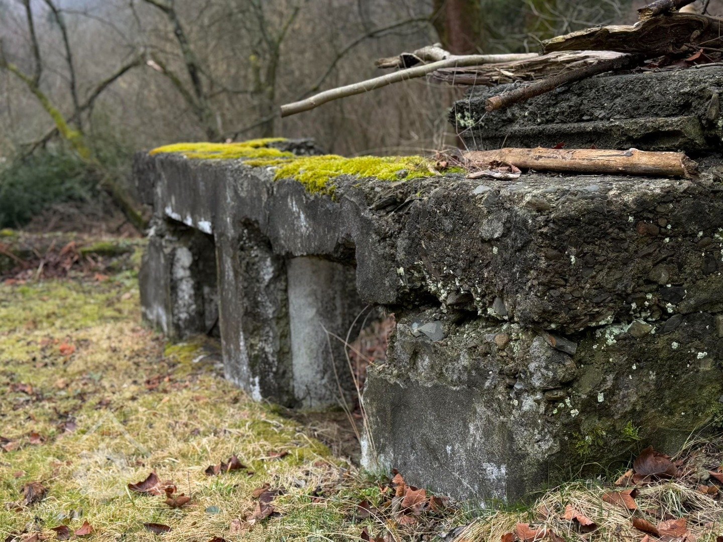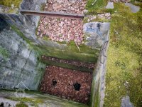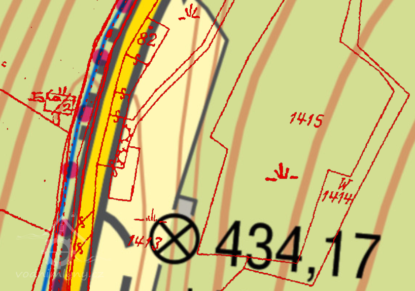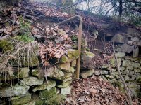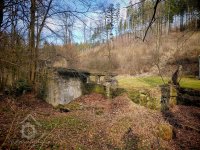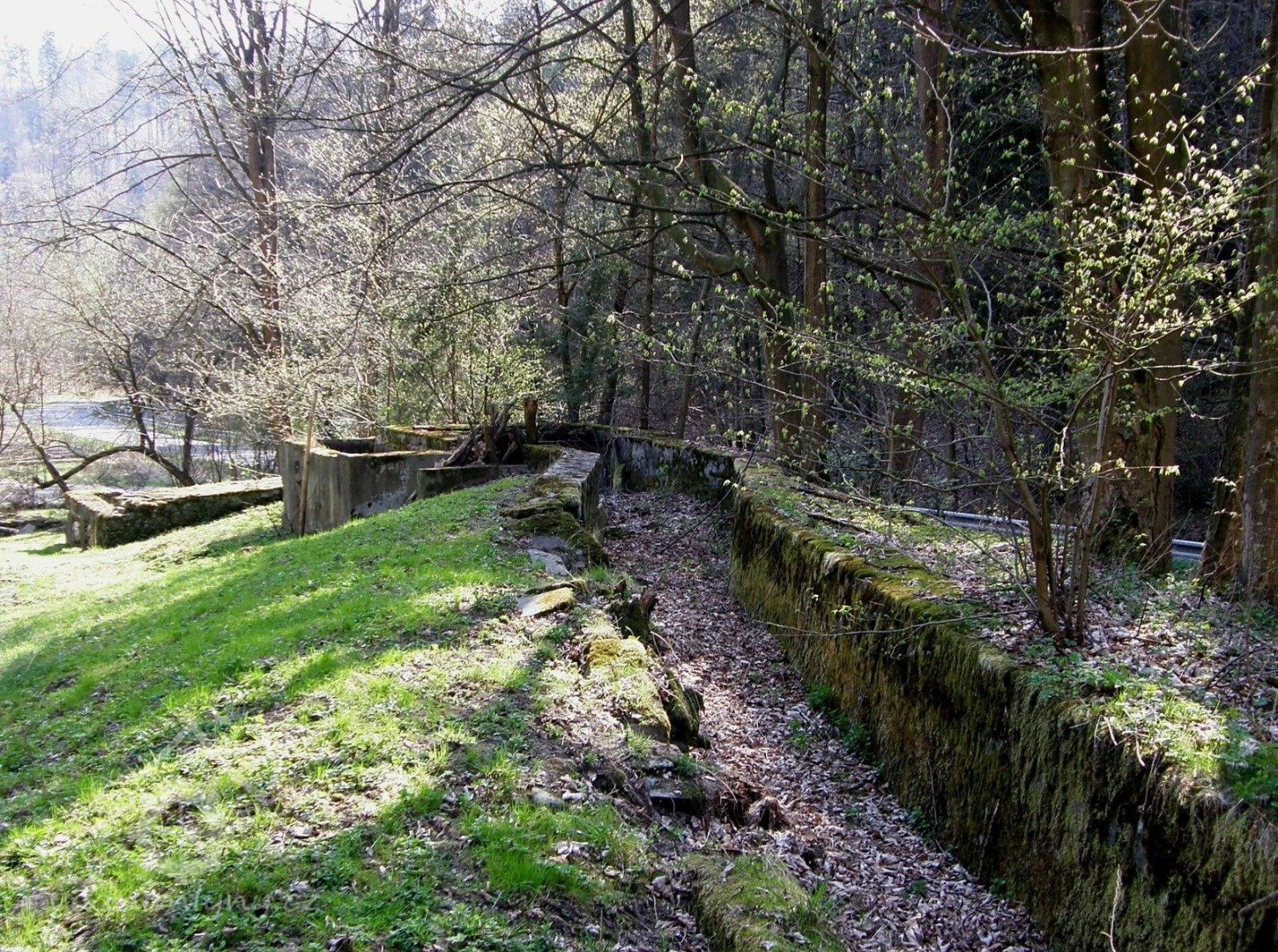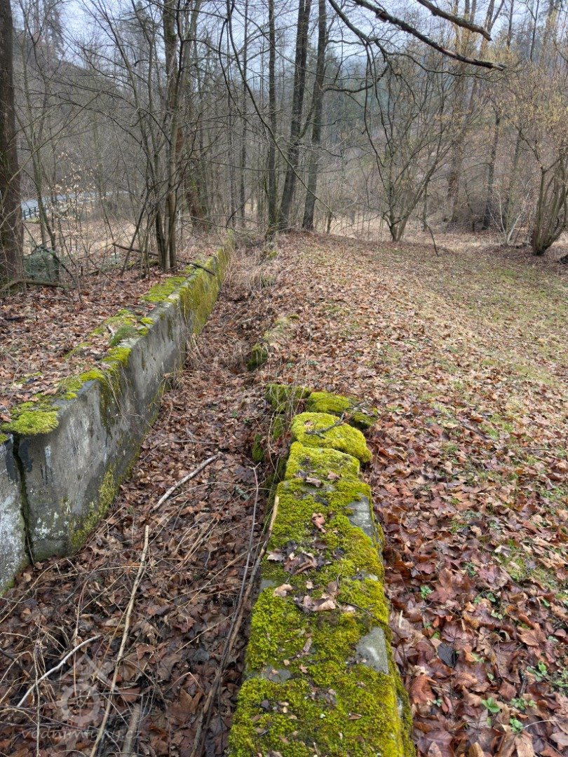 Zachovány betonové vantroky a turbínová kašna, větší část odbourána při stavbě silnice.