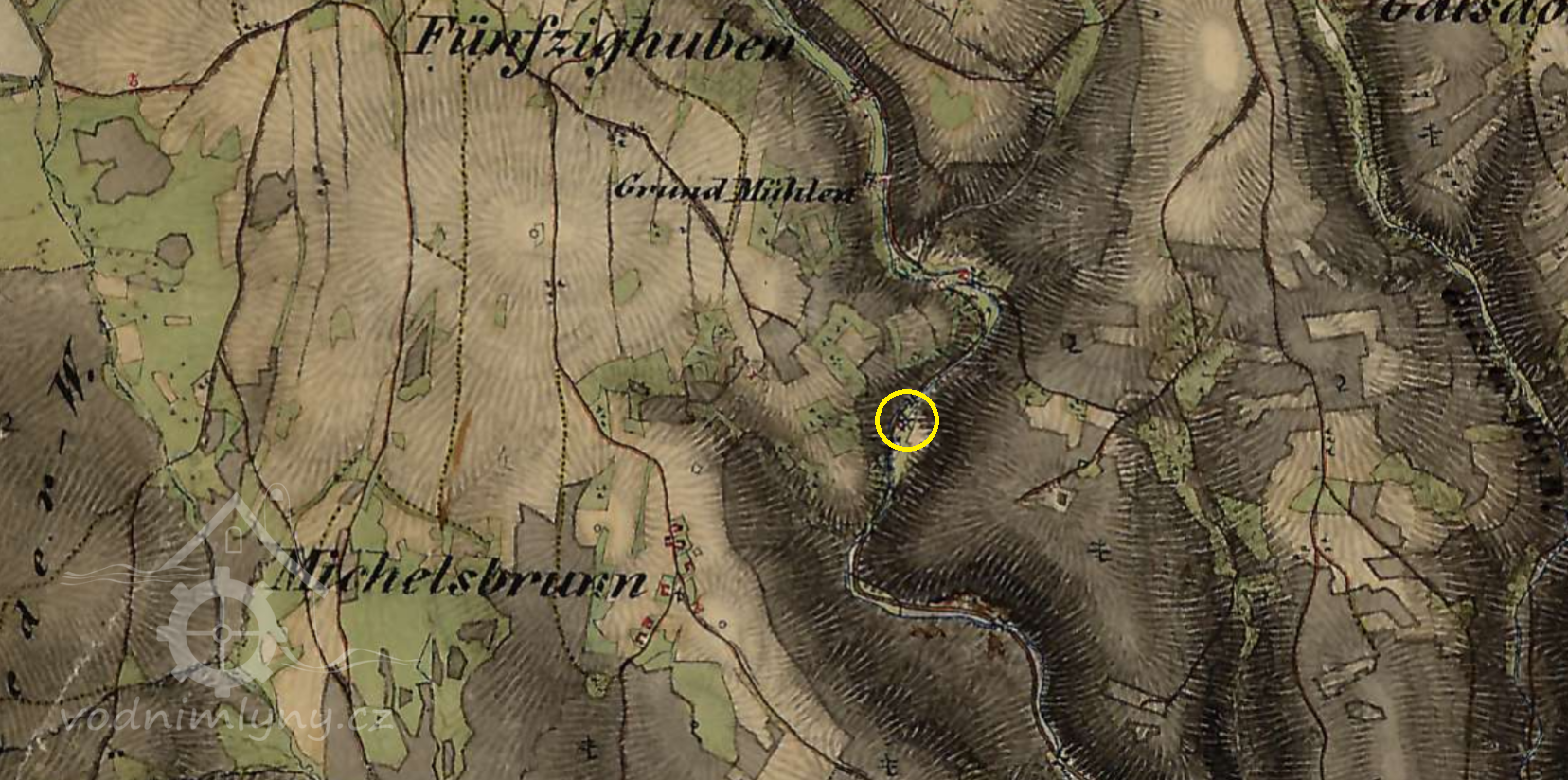 Popis1930 - 1 kolo na svrchní vodu, hltnost 0,165 m3/s, spád 5,2 m, výkon 7,4 HP