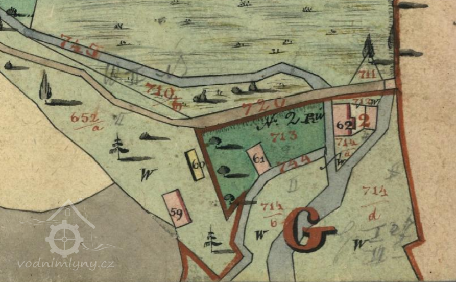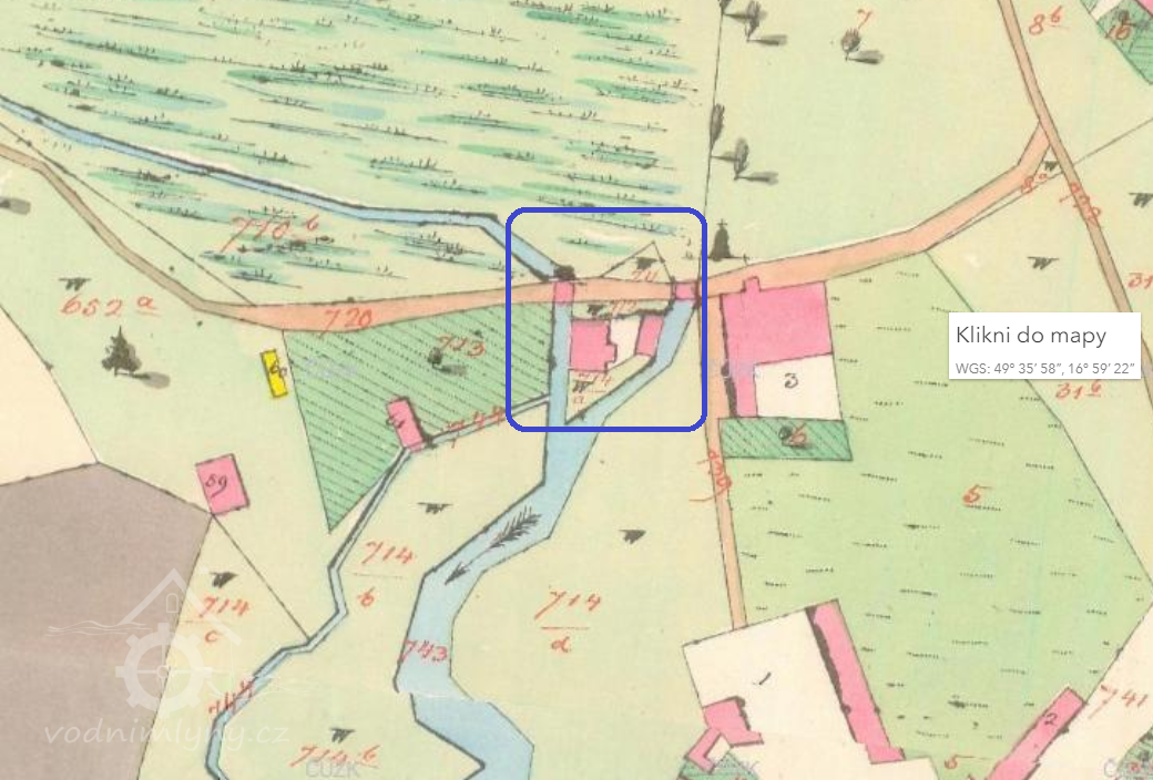 Popis1930: 1 kolo na svrchní vodu, hltnost 0,077 m3/s, spád 6,2 m, výkon 3,8 HP