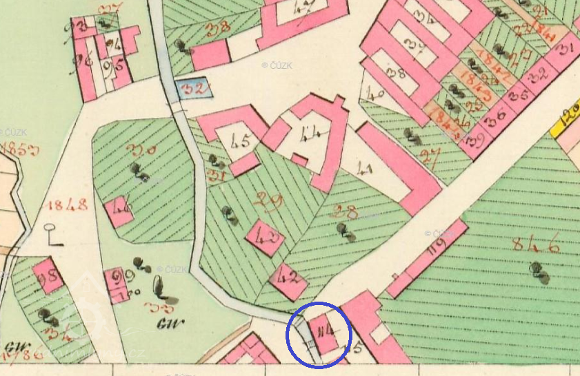 Mlýn stojí na okraji obce na parc. č. st. 114.