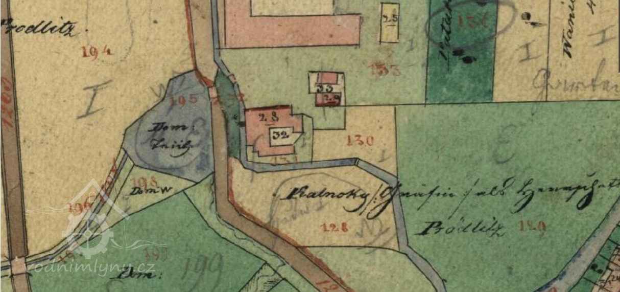 Brodek u Prostějova – panský mlýn, č. p. 43 (do r. 1801), 32 (1811-1851), 107 (od roku 1852)