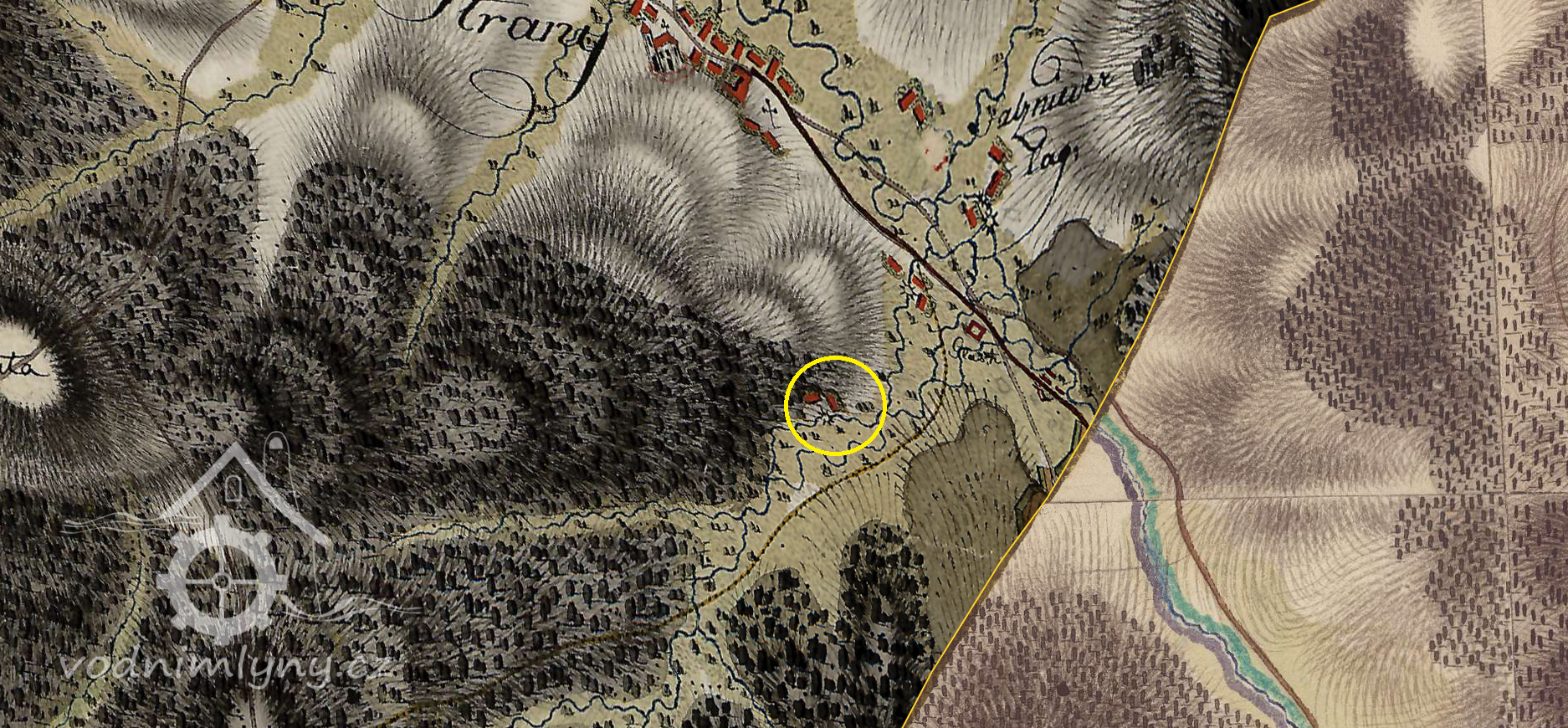 Mlýn ležící v těsném sousedství Horního Popelkova mlýna a vytvářející tak mlýnskou dvojici, charakteristickou pro Strání. Dnes již ovšem zcela zaniklý.