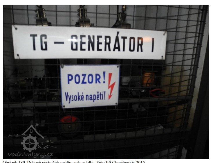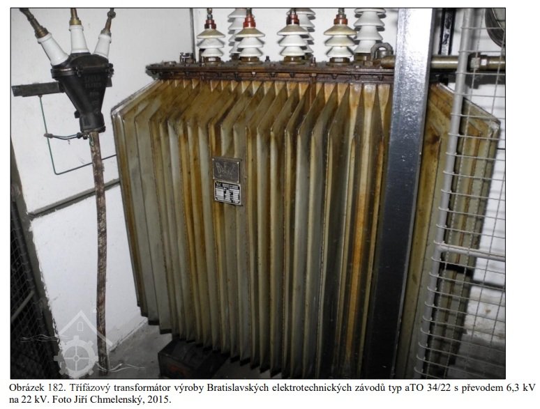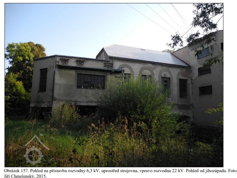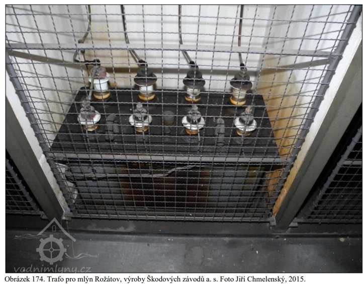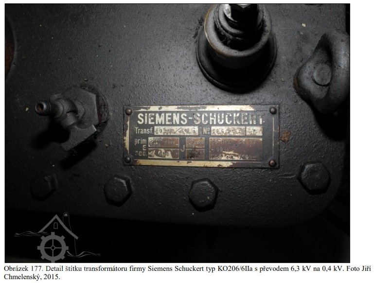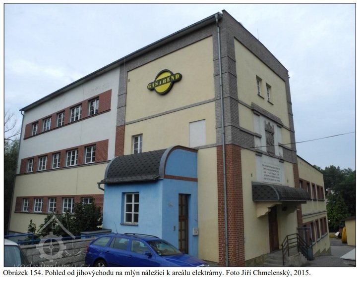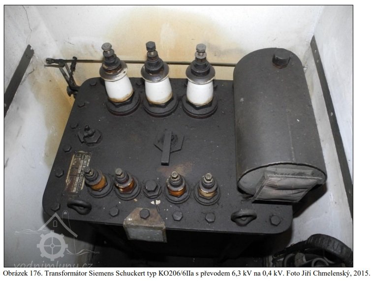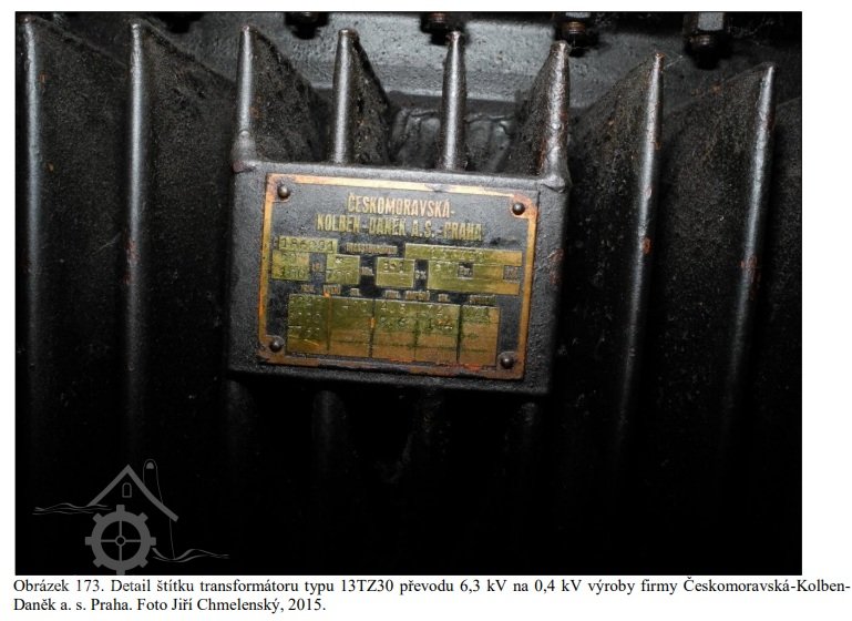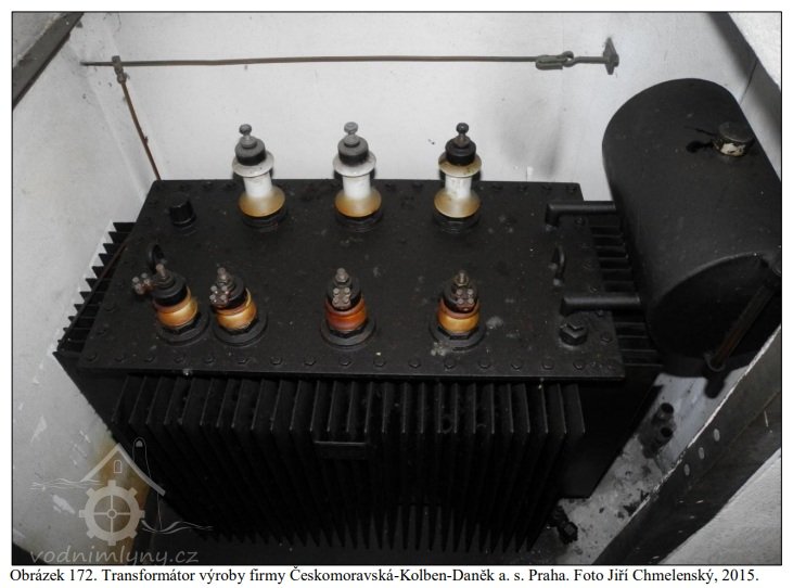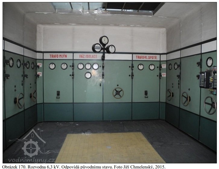 Popis1917 elektrický mlýn, napojený zemní přípojkou od elektrárny, v přízemí elektromotor 35 kW/500 V a transformátor 6.300 V/500 V