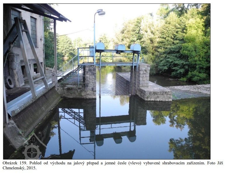 1878: třemi stavidly se pouštěla voda do mlýnského náhonu, u uměleckého mlýna čp. 6 byla 2 stavidla pouštějící stavidla na 5 kol na spodní vodu, dalším stavidlem tekla voda na kolo pily. Pro zadní obyčejný mlýn bylo určeno jedno stavidlo se 2 koly, poslední stavidlo přivádělo vodu na slup na odchyt ryb.
