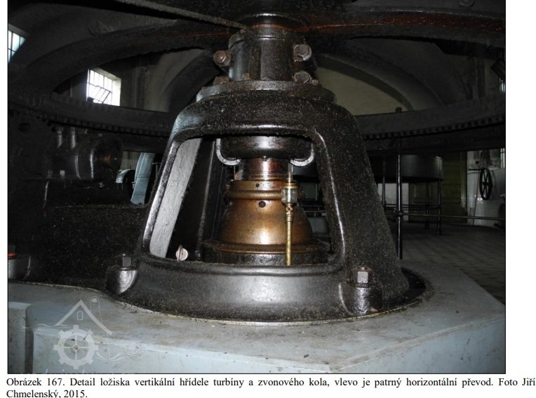 převod od turbíny na horizontální hřídel palečním kolem s pastorkem
