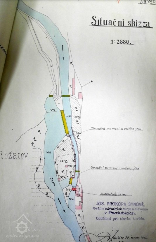 1916 zahájena stavba elektrárny s 2 Francisovými turbínami 2 x 185 HP. S automobilkou propojena vysokonapěťovým kabelem 6,3 kV, zapojeným v rozvodně parní tepelné elektrárny.