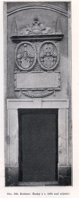 Na počátku 17. století patřila obec Rožátov včetně mlýna Bohuslavu Jáchymu Hasištejnskému z Lobkovic, který dal do průčelí mlýna zazdít rodové znaky své a manželky Evy, rozené z Valdštejna, s letopočtem 1606.