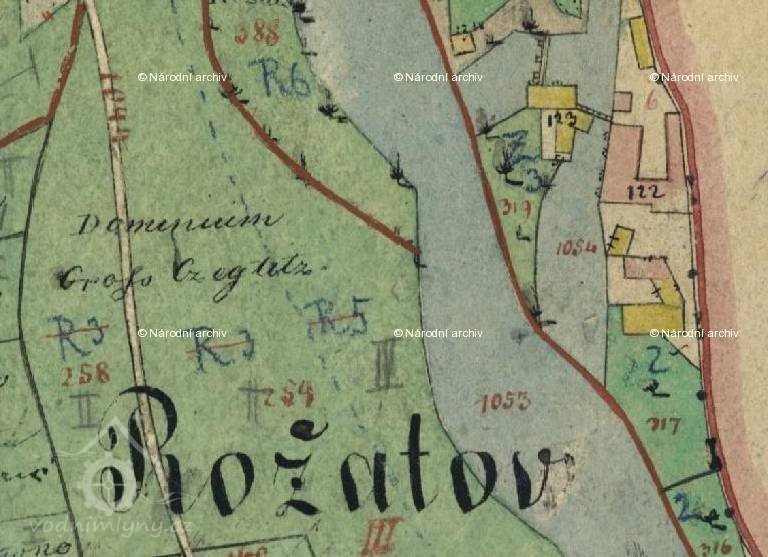 1748 Tereziánský katastr: "mlýn o 6 kolech s pilou na stálé vodě a s 5 stoupami na stálé vodě pro mletí krup, mimo to pro mletí sladu v době velké vody mele povodník o 1 kole na stálé vodě".