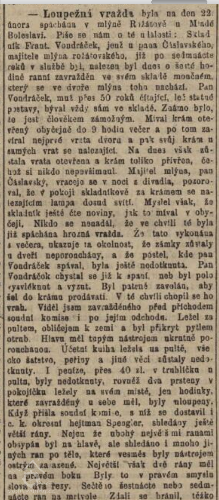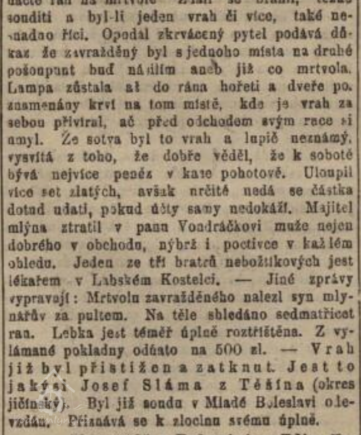 V r. 1879 byl ve mlýně zavražděn skladník. (RR)