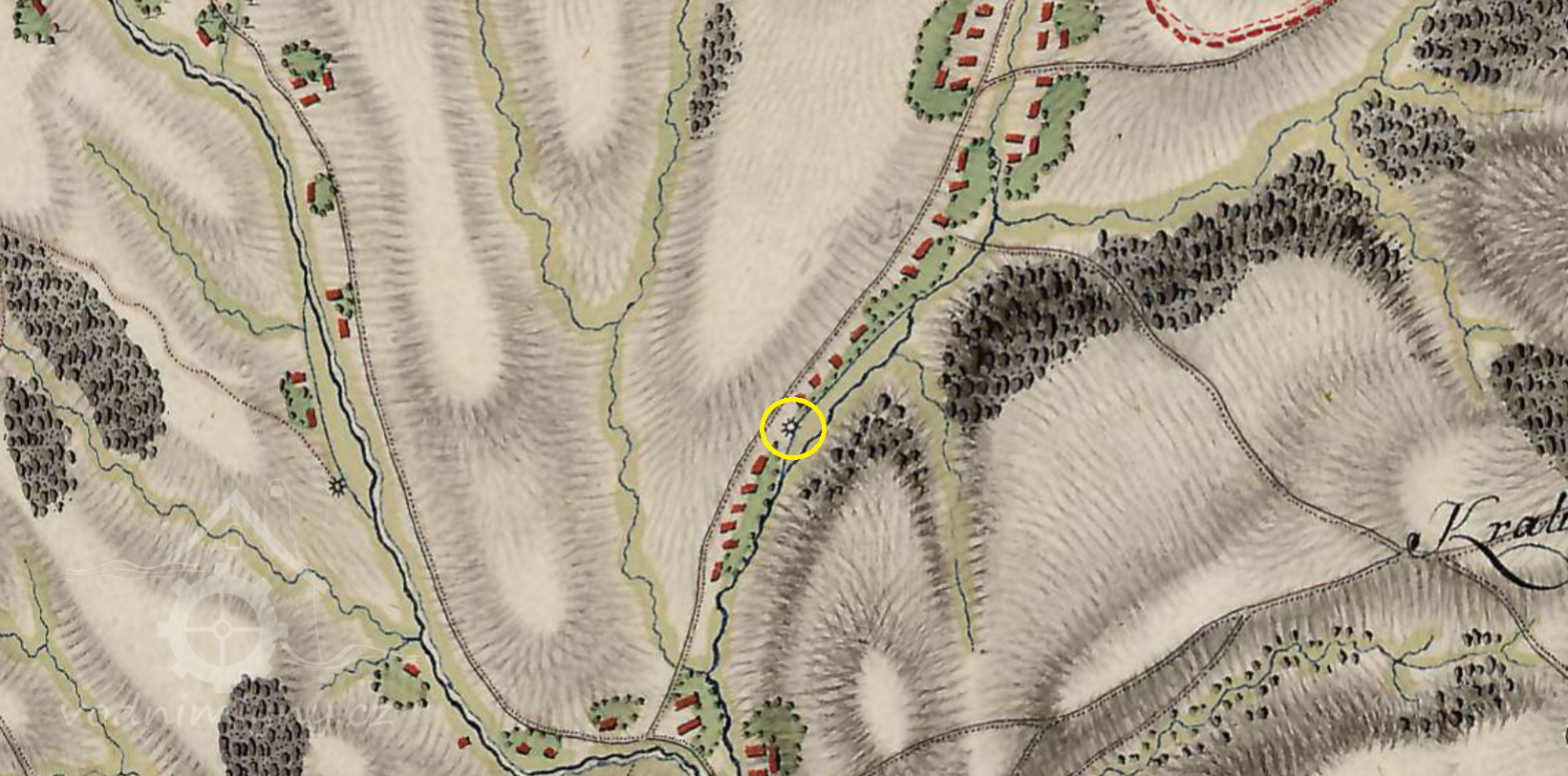 Velký mlýn pod obcí.