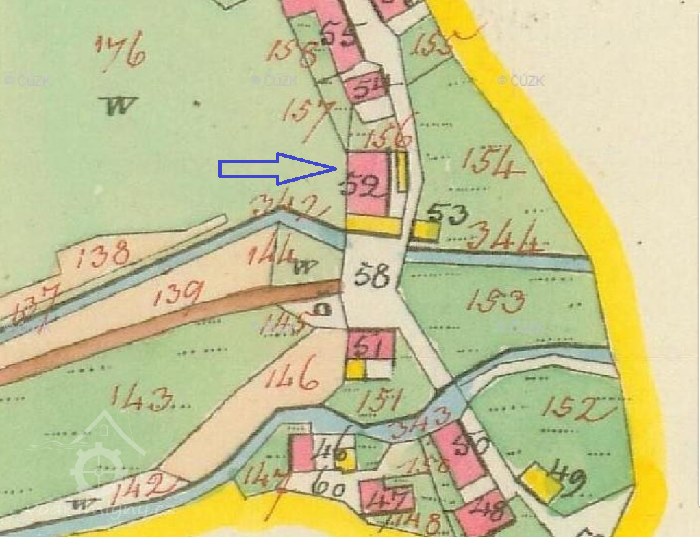 Není jasné, zda současná budova čp. 78 je pozůstatkem mlýna nebo jiného zařízení na vodní pohon, od roku 1938 se však situace nezměnila.