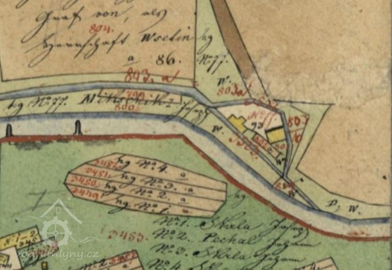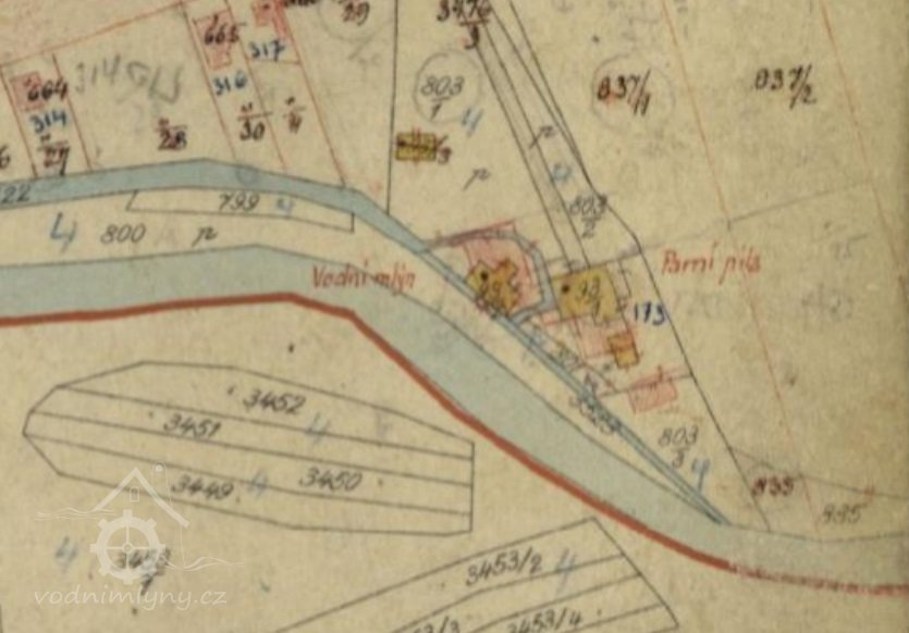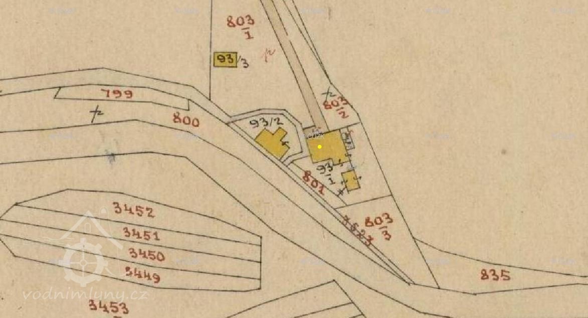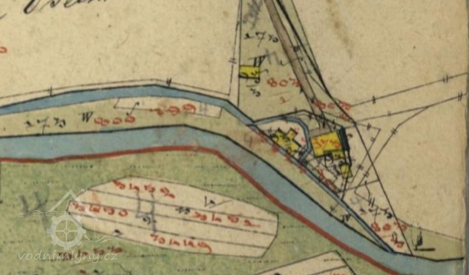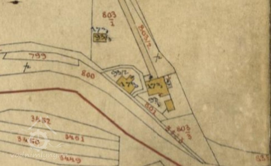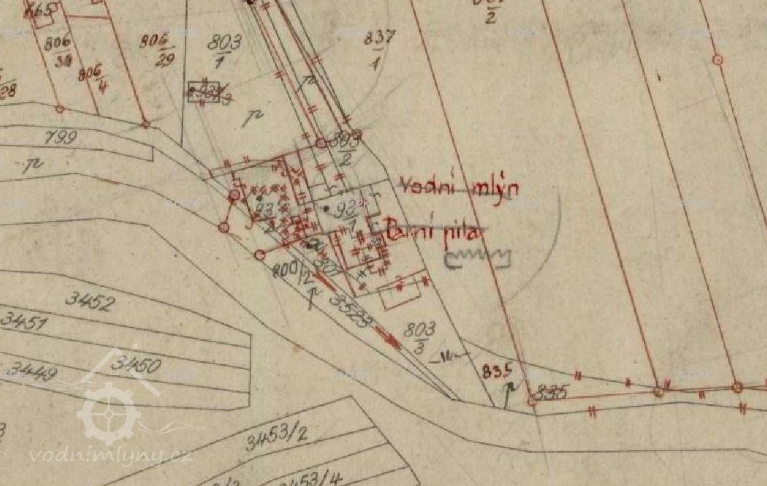 Popis1930: 1 kolo na spodní vodu, hltnost 0,07 m3/s, spád 3,8 m, celk. výkon 4 HP