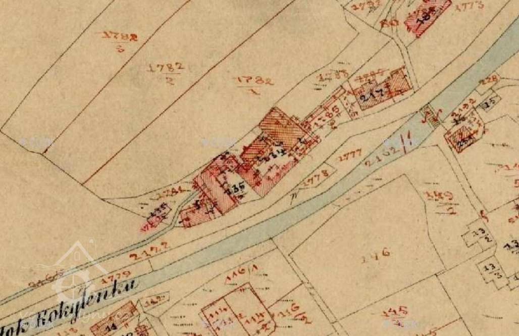 Popis1930: 1 kolo na svrchní vodu, hltnost 0,057 m3/s, spád 4,45 m, výkon 2 HP