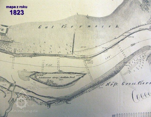 Lodní mlýn stál u pravého břehu Labe v zátoce nedaleko ostrova, který při regulaci Labe zmizel.