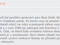 V roce 1930 byl majitelem mlýna Rudolf Garle, potok se nazýval Ouštecký.