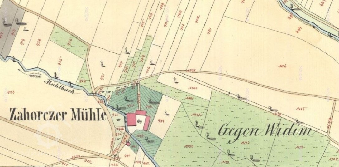 V roce 1930 byl majitelem mlýna Dr. Ing. Ad. Pokorný, potok se nazýval Hoštecký.