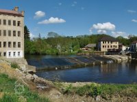 Malá vodní elektrárna na místě pily na ostrově od 20. let 20. století.