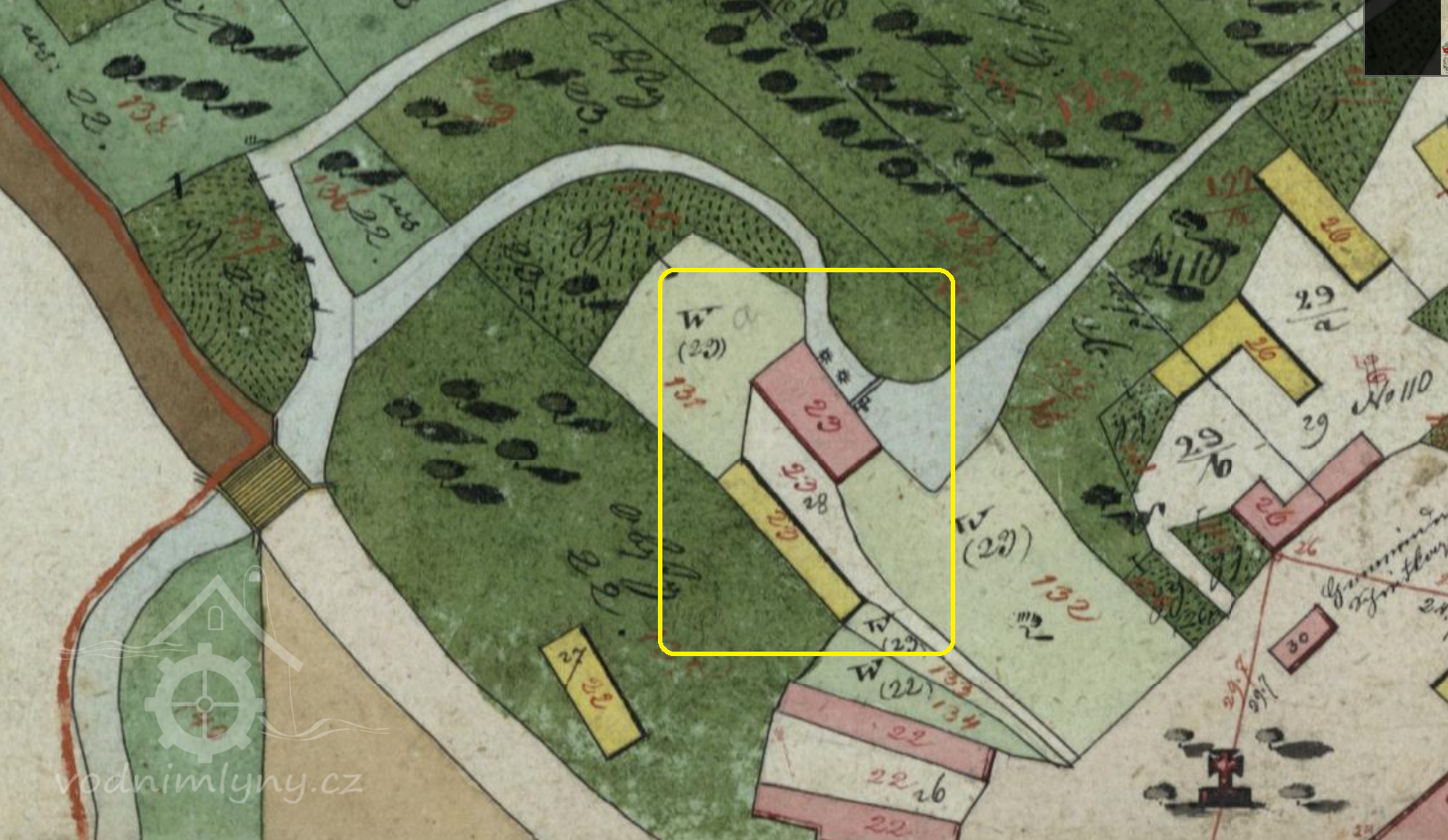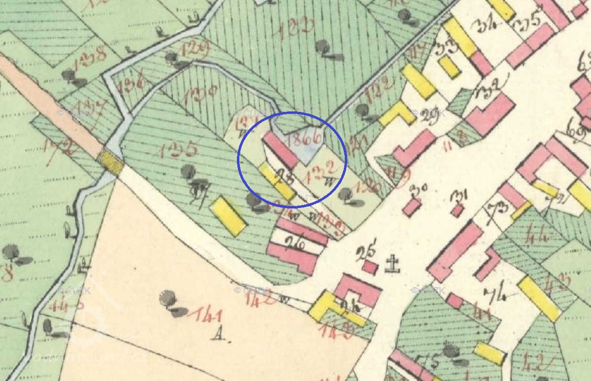 Mlýn se nacházel uprostřed obce, zachována jen stodola a hospodářský trakt.