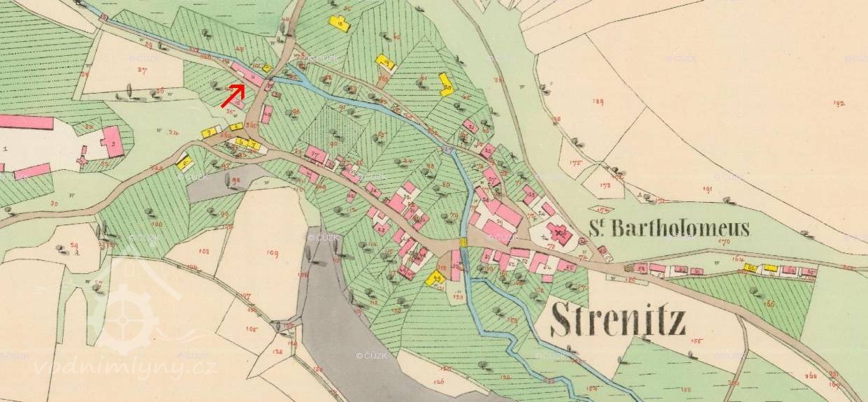 V roce 1744 koupil panství František Josef Pachta. Strenický mlýn měl tehdy propachtován mlynář Josef Vacek. V roce 1746 podepsal hrabě Pachta s mlynářem Vackem smlouvu, kterou mu mlýn prodal dědičného nájmu za 1000 zlatých. Byl sjednán roční nájem o sv. Janu a na vánoce, vždy po 50 zlatých. Mlýn na stálé vodě měl 2 složení, jeho součástí bylo obydlí s jednou světnicí a komorou, stáje pro krávu, prase a drobné domácí zvířectvo, kus polí, louka a zahrada. Na mlýně měli povinnost mlít mleči ze vsi Strenice, Rokytovec, Řehnice, Pětikozly a Malé Horky. (MH)