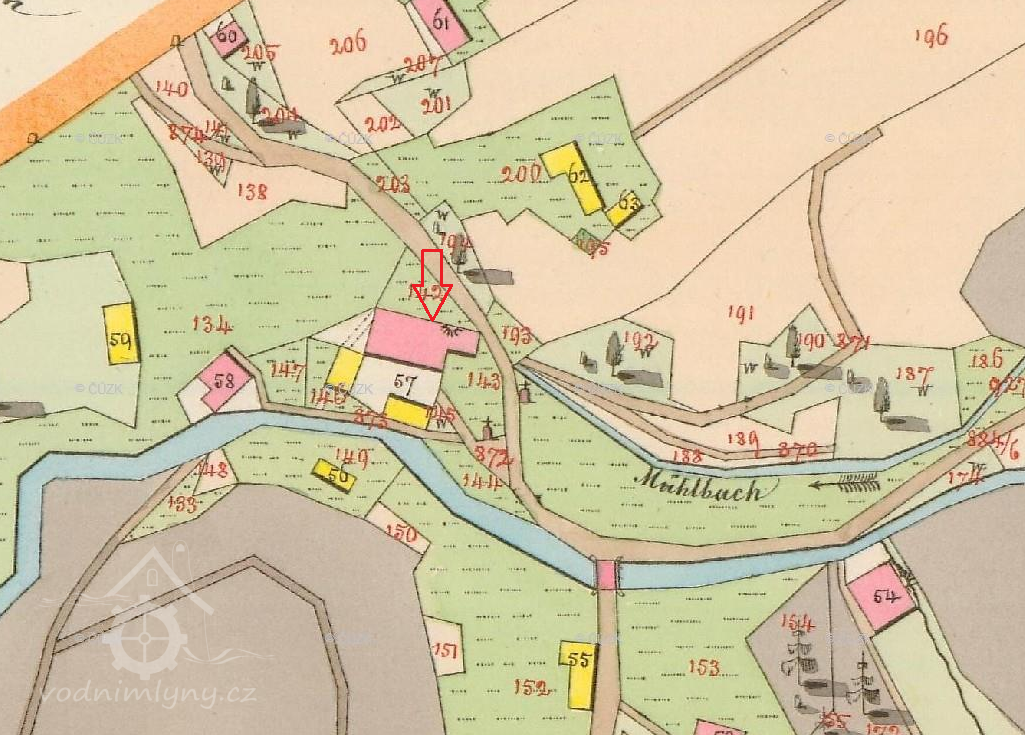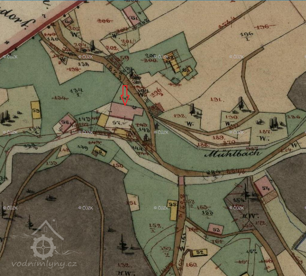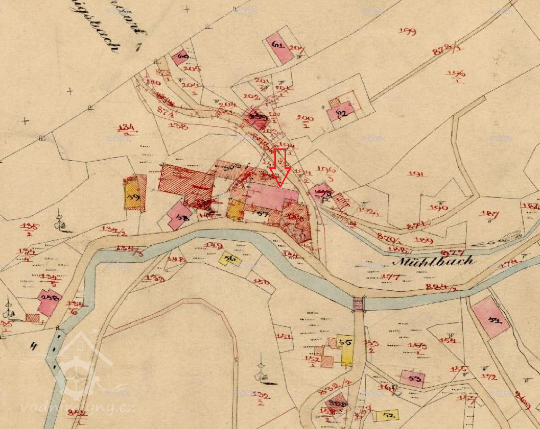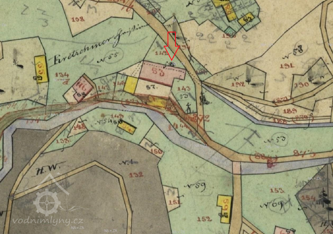 Původní obilný mlýn s čp. 53 vedený na mapách stabilního katastru a v matrikách pod obcí Ruprechtice stál na místě dnešní budovy čp. 135, která je součástí obce Kateřinky. Od 2. poloviny 19. století zde byla přádelna ovčí vlny, od konce 19. století továrna na výrobu sukna.