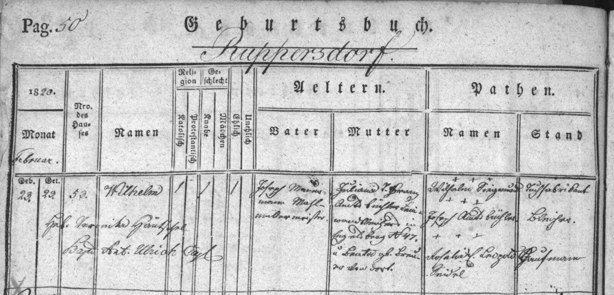 Josefův mladší bratr Willibald se rovněž vyučil mlynářem a zpočátku pracoval na bratrově mlýně jako mládek. Přibližně od poloviny 60. let je u něj však uváděna živnost spřádání ovčí vlny zde v čp. 53, kde rovněž bydlel s manželkou Mathilde Demuth, jejíž otec Ignaz Demuth pracoval zde v přádelně svého zetě. Již v matričním záznamu o sňatku z listopadu 1865 je Willibald uváděn jako majitel přádelny ovčí vlny v Ruprechticích čp. 53.  V této době byly tedy pravděpodobně v Ruprechticích ve vodném provozu čp. 53 provozovány souběžně 2 živnosti – mlýn a přádelna.