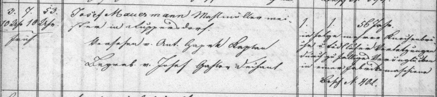 Salomona vystřídal Josef Mauermann, jehož rod zde pak provozoval mlýn po 3 generace. Jeho manželkou byla Juliana Amtsbücher, původem z bělidla v Andělské hoře čp. 47. Manželství bylo bohaté na potomstvo, jako první byla v matrice v čp. 53 zapsána dcera Juliana (1797), následovali příští mlynář Josef (1799), Franz Anton (1800), Magdalena (1802), Veronika (1804), Franz Xaver (1806), Franz (1807),  opět Veronika (1810), Sebastian (1812), Wenzel (1814), Johann (1815), Magdalena (1818) a Wilhelm (1820).