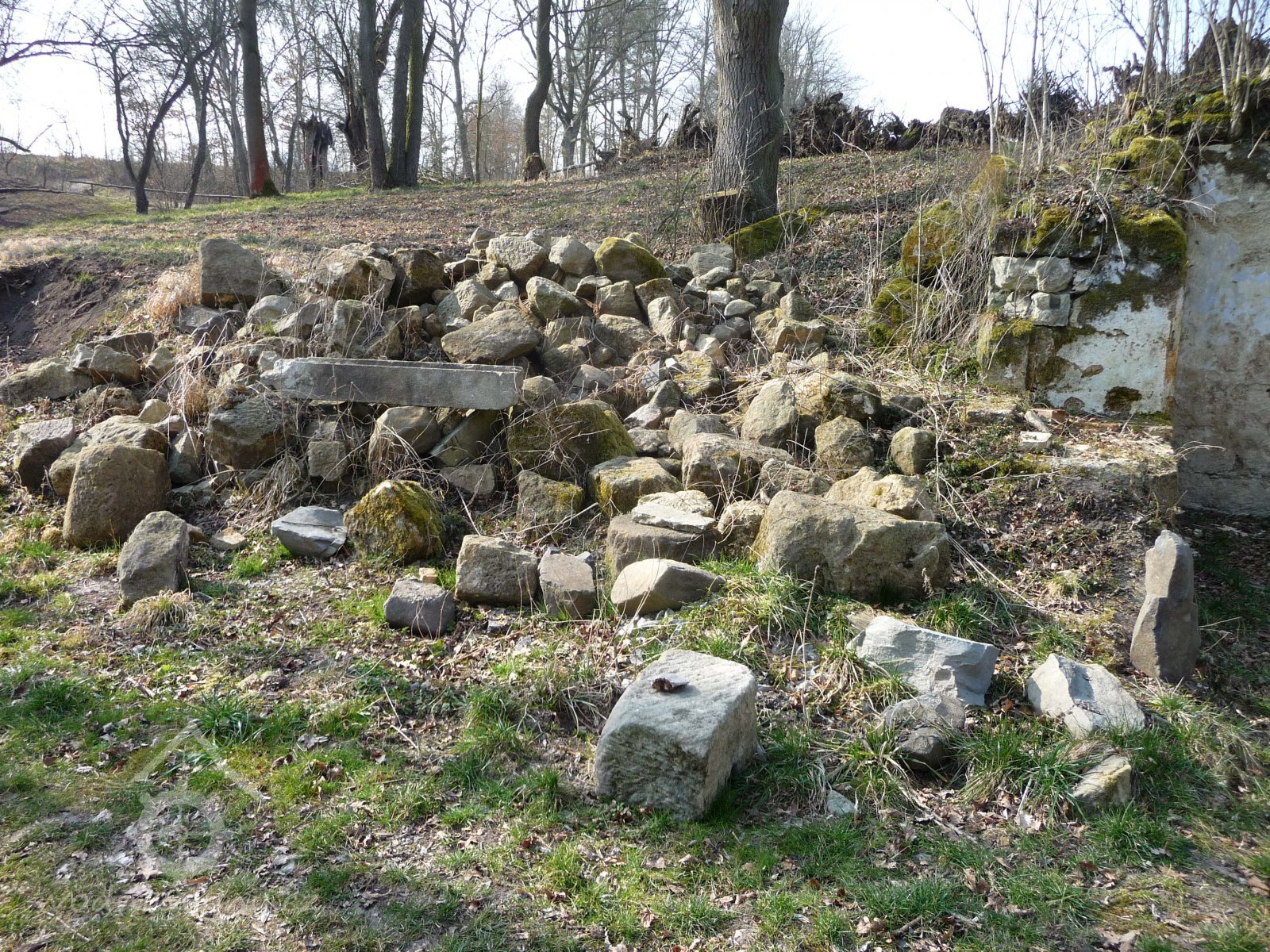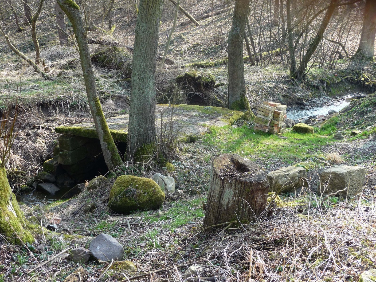 Pod hrází je jeden mlecí kámen.
