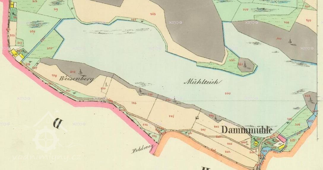 Hrázský, Panský mlýn; Damm, Herrn Mühle
